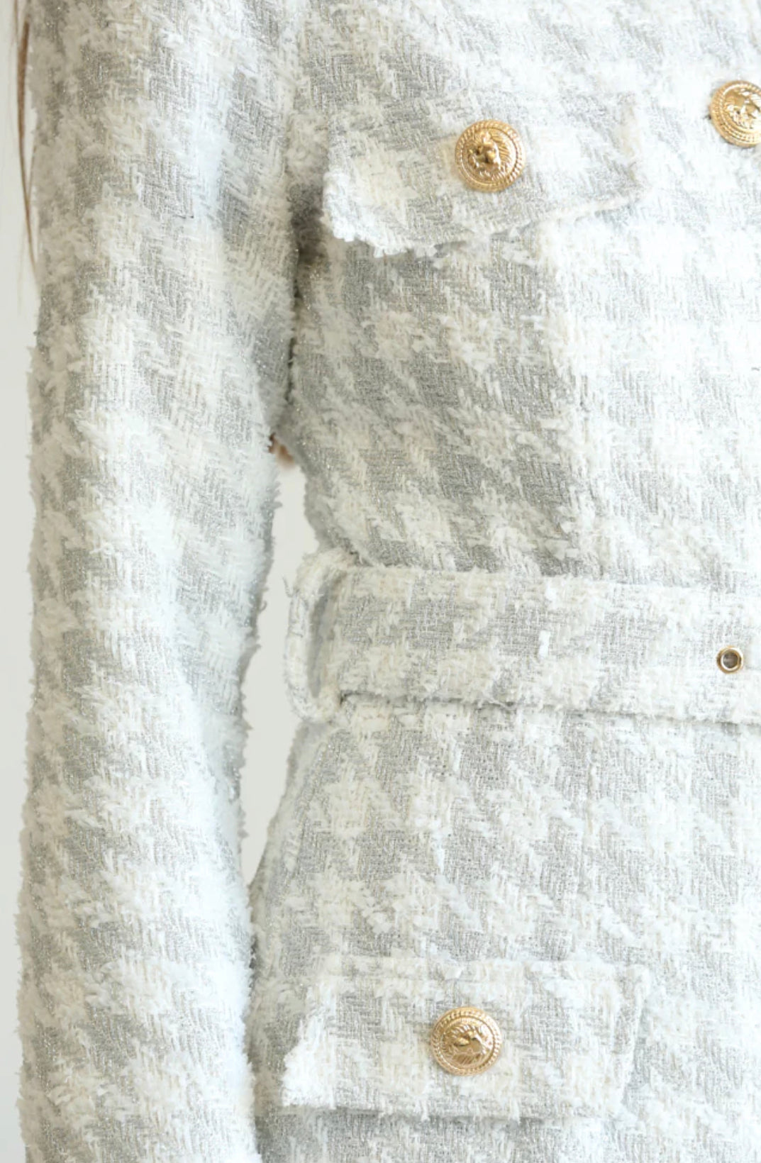 Houndstooth Tweed Gold Buttons Mini Dress